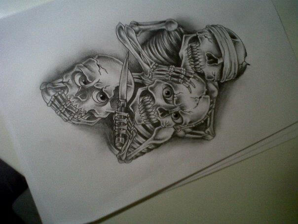 See No Evil Hear No Evil Speak No Evil Skull Tatuaje Design See No